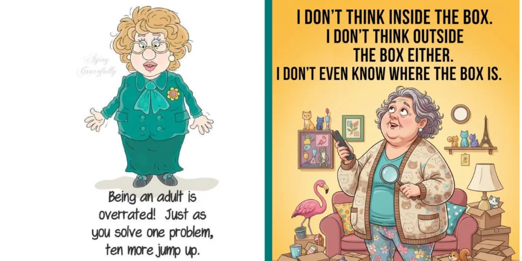 It is heartwarming to see pictures of cheerful grandmothers. In these sketches, elderly women are seen with smiling faces and
