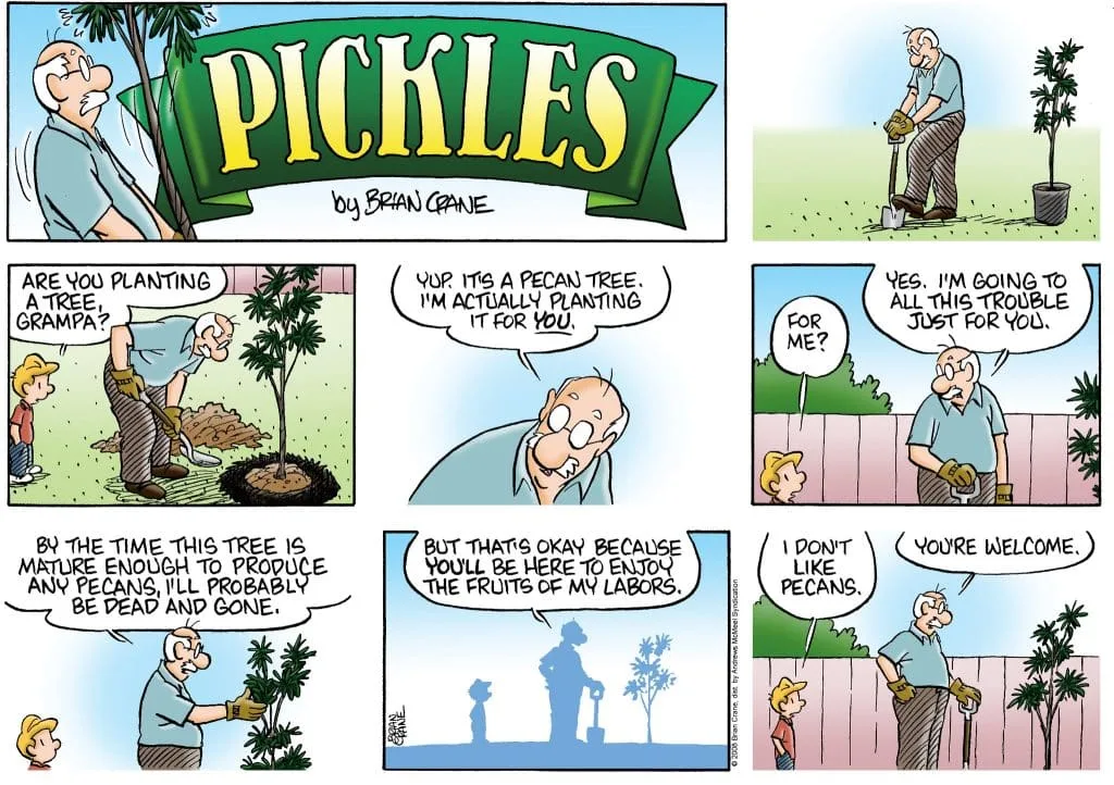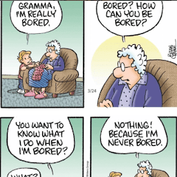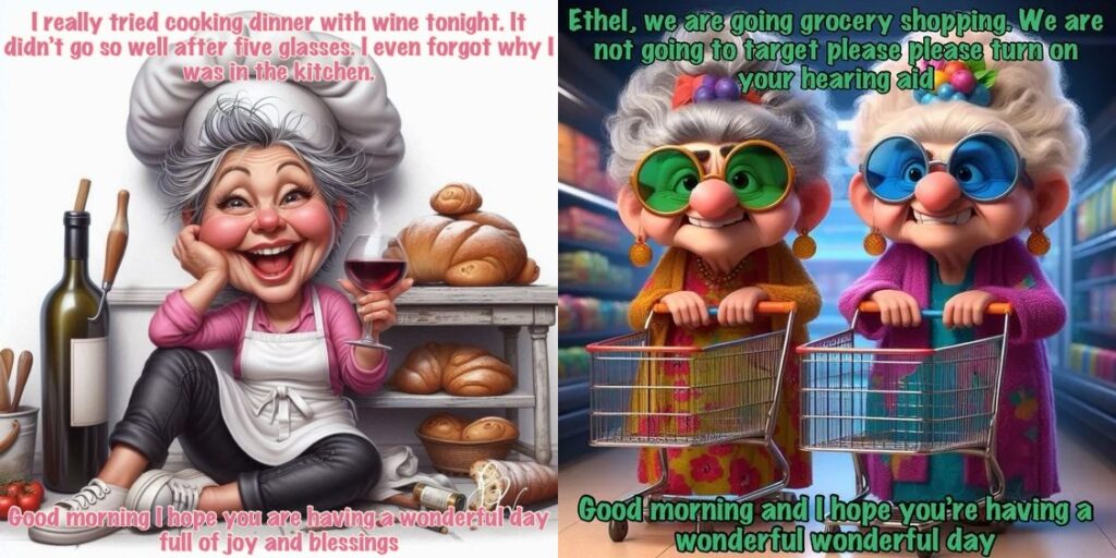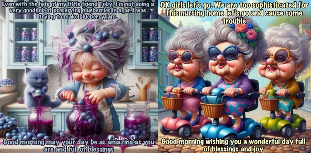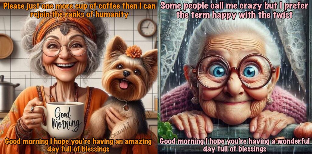 Old lady Cartoon: She told us that one morning when she was waiting for her coffee, she had the notion